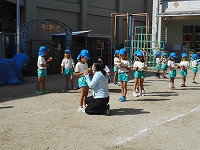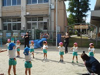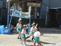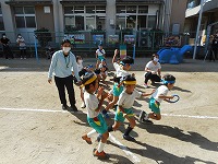 5歳児すみれ組は最後の運動参観。それぞれ役割を分担し、活躍してくれました。開会に先立ってセレモニーでは「一休音頭」を踊りました。普賢寺小学校6年生のお兄さん・お姉さんも教室から手を振ってくださり応援が嬉しかったです。