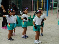 3歳児もも組は初めての運動参観!お客さんの前でちょっぴり緊張気味でしたが、開会式の後からは顔がこぼれ、元気に体操をすることができました。