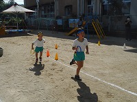 園長先生めざして「よーいどん」走ることが楽しくて嬉しくてニコニコ笑顔がいっぱいでした。