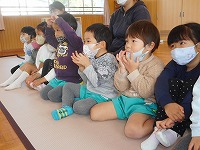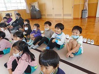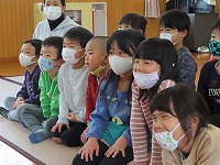密を避け、各クラスごとに3回公演してもらいました。「十二支のおはなし」を聞きました。また、家庭でも聞いてみてくださいね。これからもお話の世界を楽しみたいと思っています。 |