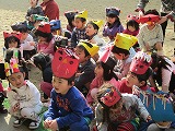 豆を投げてやっつけようね・・・という話や鰯を食べて柊の葉っぱを 玄関先に飾る風習のことなど、真剣に聞いていました。 その後は、クラス毎に鬼役になり、「鬼は外!」「福は内!」と