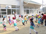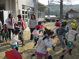 園庭中をキャーキャー言って賑やかに駆け回る園児達でした。
