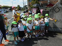 ゴーヤ&ツルムラサキを植えたよ 野外保育に出かける年長すみれ組を「いってらっしゃい!」と見送りました。