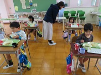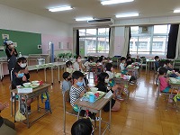 「小学校って楽しいな」「給食おいしかったな」「また来たいな」と口々に話していて、就学に向けての期待をもち楽しく過ごすことができました。5年生のみなさん、先生方ありがとうございました。