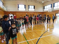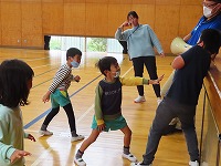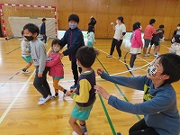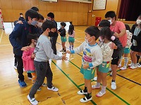 昼休みは体育館で♪だるまさんがころんだ♪ジャンケン列車をして一緒に遊びました。