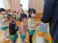 保育室では、うさぎ年にちなんで、うさぎのせんべいをおいしくいただきました。