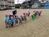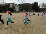 12月から毎朝続けてきたマラソンごっこ!最初は「寒い~」「走るの嫌だ~」と言っていた子ども達も、力がついて毎朝園庭を力いっぱい走れるようになりました。今日は普賢寺小学校の校庭をお借りして、「マラソン大会」をしました。ひとクラスずつ走って、みんなで応援しました。