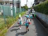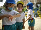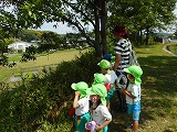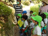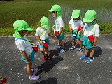 たんぽぽ組はお散歩リングを持って、芋畑まで行きました。いろいろなものを発見!