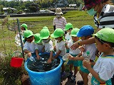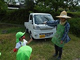 田植えをされる地域の方が「ほらみて!これ知ってる?四つ葉のクローバーだよ」と見せてくださり、田んぼにお邪魔して、探しました。「あった!」「みて!」と喜んでいました。