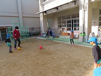 小学校の先生と遊びました 普賢寺小学校の先生が来てくださり、年長すみれ組と一緒に過ごしました。先生が得意なサッカーを教えてもらったり、当番活動を見てもらったりしました。子ども達は学校について質問をし、小学校の先生にいろいろ教えていただきました。