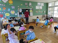 「4月になったら1年生で来てくれることを待っているよ」と言っていただき喜んでいた子ども達です。また一つ、就学に期待をもつことができました。これからも隣接するメリットを活かして、小学校との連携を大切にしていきたいと思います。 |