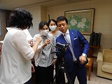 毎年、全国幼稚園ウイークに京田辺市立幼稚園8園の5歳児が中央体育館に集まり、「京田辺市立幼稚園大会」を行ってきました。 今年で第46回を迎えましたが、今回は新型コロナウイルス感染症拡大防止のため、それぞれの幼稚園で一休音頭を踊ったり、各園の紹介をしたりしたものを11月13日(金)8:30から京田辺市フェイスブックや京田辺市立幼稚園各園のホームページで動画配信します。 各園では一休さんの衣装を着て、笑顔いっぱい一休音頭を踊ったり、自分たちの幼稚園自慢をアピールしたり…子ども達も幼稚園大会に向けて準備を進めています。 本日は、幼稚園大会セレモニー 市長挨拶のメイキングの様子をお知らせします。 京田辺市長のメッセージを撮影しました。市長もこの幼稚園大会を応援してくださっています。 11月13日のフェイスブック・各園ホームページ配信に向けて、子ども達も先生達も準備を進めています。楽しみにしていてくださいね。また、取り組みの様子を各園のホームページで紹介していきますので、是非ご覧ください。 |