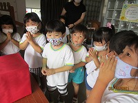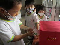 敬老の日 9月20日の敬老の日にちなんで幼稚園から祖父母の方に、ハガキを描いて出すことにしました。「おじいちゃんと又遊びたいな」「おばあちゃん元気かな」等、口々に話しながら描きました。 今年度は園内にある「手作りポスト」に投函!「ポストどこかな?」とポスト探しから始まりました。