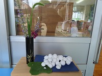 中秋の名月 9月10日は中秋の名月(十五夜)です。 先日の誕生会で十五夜の話を聞いたり、「おつきさまってどんなあじ?」のペープサートを見たりしました。ススキを飾って、月見団子を食べました。今日は紙粘土でお団子を作ってお月見ごっこをしました。