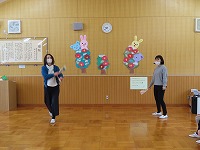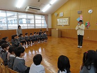 先生達がお正月遊び(はねつき・けん玉・コマ回し)を披露しました。子ども達は笑顔で応援してくれました。