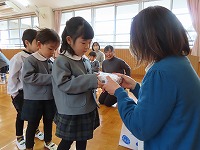 子ども達がお待ちかねの福引きをしました。福引きの色が発表される度に大喜びで、園長先生から景品をもらいました。