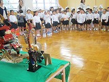 誕生会の後、みんなでかぶとをかぶって、子どもの日の集いが始まりました。