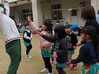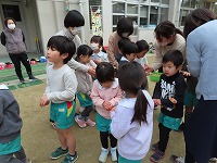 豆まき 2月3日は節分です。幼稚園ではひと足早く豆まきをしました。自分でつくった鬼のお面をつけて、かわいい鬼さんが集まりました。心の中にいる泣き虫鬼や弱虫鬼、おこりんぼ鬼をやっつける為に鬼を追い出し、福を呼び込みました。「おには~そと」「ふくは~うち」元気な声が響き元気いっぱい豆まきをしました。