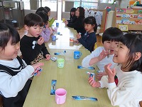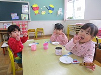 保育室に戻って、いわしと福豆きなこボーロをいただきました。 今年一年、元気に過ごせますように…