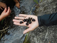 少し移動して桜並木まで足をのばしました。タニシ、バッタ、ザリガニがいて、捕まえたり、観察したりしました。