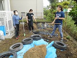 今日は裏に新しく遊び場を作りました。