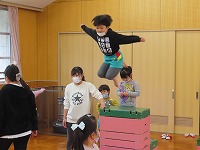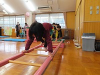 雨でしたが、体を動かす楽しさを味わうことができました。「こんなこともできるようになったよ」「先生!みてみて!」と挑戦して、できるようになる嬉しさを感じている子ども達でした。