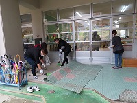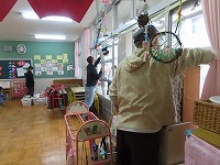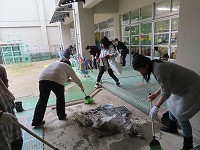 子ども達がホールで遊んでいる間は、お父さん、お母さん達が環境整備で、幼稚園をきれいにしてくださいました。