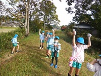 秋晴れのすがすがしいお天気のもと、先日掘った芋で焼き芋大会をしました。いつもお世話になっている大冨さんのご厚意で、芋畑を貸してくださり、焼き芋をすることができました。初めての試みで、子ども達も先生達もワクワク!散歩で落ち葉を集めたり、家から松ぼっくりを持って来たりして楽しみにこの日を待っていました。
