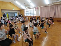 3年生が来てくれました 普賢寺小学校3年生が国語科のまとめで「学校自慢」をしてくれました。小学校のお兄さん、お姉さんが来てくれるのは初めてで、全園児で聞かせてもらいました。幼稚園の子ども達にわかりやすいように話をしてもらい、普賢寺小学校の良いところや自慢を聞かせてもらいました。