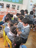 3歳児もも組さんのお部屋にやってきたすみれ組さん、