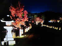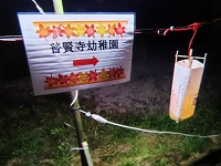大御堂観音寺ライトアップ  幼稚園の地域にある大御堂観音寺で11月19日(金)から28日(日)までライトアップがされています。「コロナがはやくおさまりますように」「元気に大きくなりますように」など、普賢寺幼稚園5歳児が絵を描き、願いごとを書いた竹灯籠も参道を灯しています。紅葉もライトアップされ、一層美しく照り輝いていました。   |