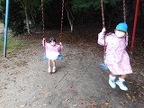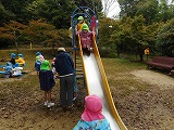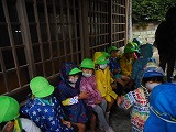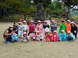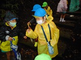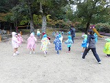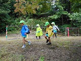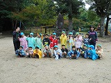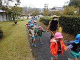 小雨だったので、カッパを着て神社を散策!もみじ・ぎんなん・どんぐり・まつぼっくり・くり…秋をたくさんみつけました。