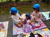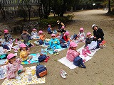 お待ちかねのお弁当&おやつタイム♪雨もやみ、お友達と嬉しそうに食べました。
