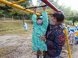 お昼からは雨がやみ、外で思い切り遊びました。だるまさんがころんだをしたり、鬼ごっこをしたり、遊具で遊んだり、かくれんぼをしたり、広い場で思い思いに遊ぶことができ、笑顔があふれていました。