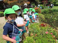 今日は、地域のお寺で、広場を走ったり、季節の花を摘んだり見たりして楽しく過ごし、道中はてくてくとしっかり元気いっぱい歩くことができました。今年も、地域のいろいろなところを歩いて行く「てくてくチャレンジ」を楽しんでいきたいと思います。