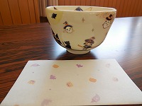 先生が季節のお茶碗を毎回見せてくださいます。今回はハロウィンのお茶碗を見せてくださり、懐紙もハロウィンで「かわいい」「ハロウィン知ってる!」と大喜びの子ども達でした。