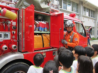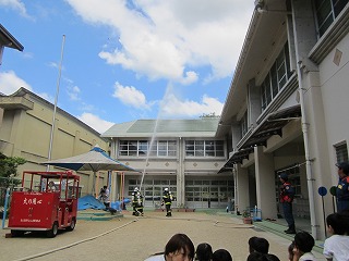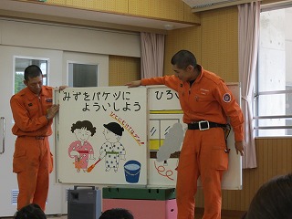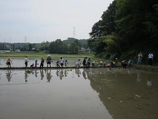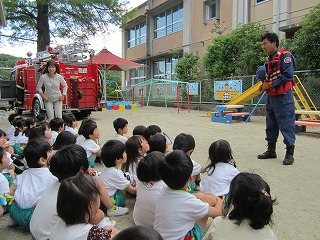 6日(水)は、防火教室をしました。 消防署の方と一緒に、5歳児2名が保育室に取り残される設定での 避難訓練を行いました。 いつも以上に緊張の中での訓練。友だちを心配する姿、 何が起きたのか分からず戸惑う姿・・・消防士さんに抱っこしてもらい 友だちが救助される姿を見て、『よかった~』とひと安心し、火災の恐ろ しさをそれぞれが感じ取り、真剣に消防署の方のお話を聞いていた 子ども達でした。 その後は、放水を見せてもらい『あれは水かあ?』と感激し、ミニ消防車 に乗せてもらって遊園地?気分を味わい、花火の約束を教わり、 映画を観て消防車に触らせてもらい、盛り沢山の体験をしました!! 8日は、田植え体験を!! 園恒例の田植え。 お天気にも恵まれ、普賢寺小学校の5年生のみんなと幼稚園の 保護者の方と地域のおじいちゃん、おばあちゃん方ともちろん園児 たちと貴重な体験をさせていただきました。 5年生と年長さんのペアで、年中・年少さんは保護者と一緒に。 年長さんは慣れた?もので、5年生にリードしてもらいながら、着実に 植えていました。 年中さんは「楽しいなあ~」なんて余裕のコメント。 年少さんは田んぼの中を歩くだけで必死。保護者にしがみ ついてました・・・ 中には、「気持ちいい~」と全身どろんこになるお友達も・・・ みんなドロドロにはなりましたが、達成感の顔を浮かべていま したよ。 秋には稲刈りを体験し、お米は冬にお餅に変身する予定です。 その時まで、自然の恵みに感謝できるよう、稲の生長を見守り たいと思います。 保護者の方、地域の方ご協力ありがとうございました。 普賢寺小学校の5年生のみんな、お疲れ様!! 貴重な体験をさせていただいたことに感謝します!!