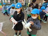 普賢寺小学校2年生のお兄さん・お姉さんが、例年は「おもちゃランド」をして交流していましたが、今年はできないので、作ったおもちゃを先生と2年生が届けてくださいました。