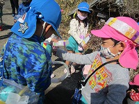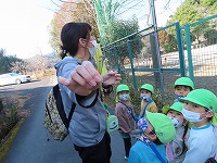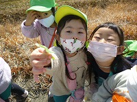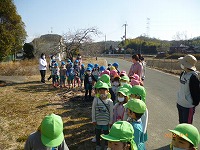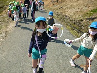 お散歩に行ったよ 1週間前に散歩にでかけた時とは違い、今日は春めいた良いお天気でした。「春を見つけに行こう」と、散歩に行きました。道端の花を見つけて「たんぽぽや」「水色の花があった」と、道のあちらこちらで春の芽吹きを見つけました。散歩で普賢寺の自然を楽しむことができました。
