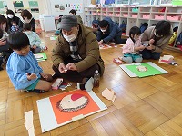 今週は保育参観週間です。親子でお正月遊びを一緒に作って楽しみました。