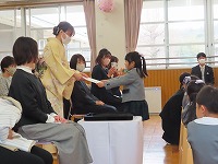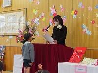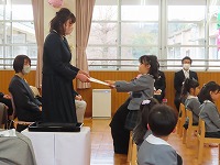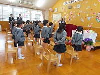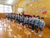 修了証書授与式 令和4年度修了証書授与式を行いました。修了児一人ずつ、証書を受け取る姿に3年間の成長を感じ、胸が熱くなりました。お別れの言葉も、幼稚園の思い出や感謝の気持ちをしっかり言うことができました。