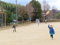 年中たんぽぽ組は凧を作って小学校の校庭をお借りして、凧揚げをしました。風が吹いてよく上がり、嬉しそうな子ども達でした。