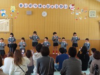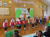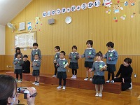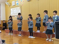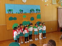 これまで、季節の歌や童謡を中心に、たくさんの歌を歌ってきました。たくさんの皆様の前で友達と歌ったり表現したりする楽しさを感じることができ、発表後は晴れやかな子ども達の顔がみられました。あたたかいご声援ありがとうございました。