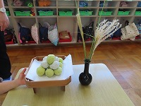 お月見会 9月29日は中秋の名月(十五夜)です。♪つきの歌を歌ったり、トイレットペーパー粘土でお団子作りをしたり、お月様の絵本を見たりしてお月見を楽しみにしてきました。