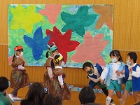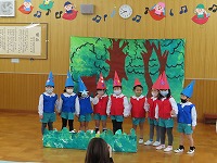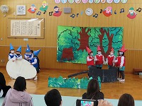 「ぐりとぐら」の劇遊びをしました。日頃、楽しんでいる遊びや歌を入れて楽しい劇になりました。
