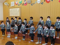 今年度は特に音楽表現を大切に保育してきました。保育室から歌と笑顔があふれ、活気ある毎日となっています。たくさんの拍手をいただき、また一つ、自信につながりました。あたたかく見守ってくださりありがとうございました。