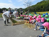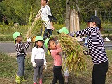 幼稚園の子ども達は、刈ってくれた稲を運ぶ役をしていたのですが、