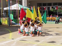 5歳児すみれ組は、心をひとつに大旗で表現しました。みんなで考えた動きを、友達と力と心を合わせて頑張りました。一生懸命な姿に感動しました。リレーも何度も何度も話し合い、当日を迎えました。幼稚園最後の運動会!大きな自信につながったと思います。