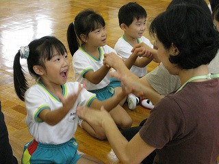 お母さんと触れ合う子ども達(5歳児)は、とっても可愛い笑顔で、生き生きとしていて最高の楽しい時間を過ごしました。