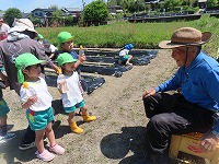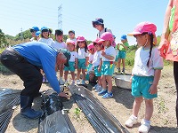 水を「大きくなーれ」「おいしくなーれ」と、たっぷりあげました。大冨さんにいろいろ話す姿も見られ、身近な地域の方に親しみをもつ姿が見られました。